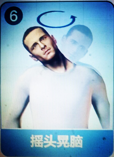 左右,前后,360度旋转5次,再反方向旋转5次。