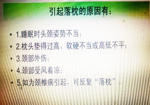 落枕:以颈部疼痛,颈项僵硬,转侧不便为主要表现的颈部软组织急性扭伤或炎症。
