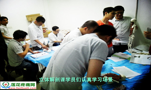 结合触诊解剖和功能解剖,内容涉及头枕部、胸廓、颈、胸、腰部的所有脊柱骨和上下肢的重要骨性标记及主要肌肉的触诊和功能。用层层剖析的方法使你能形成盲视下清晰的解剖构造。同时详细讲解压痛点的体表定位,老师指导学员一对一的实际操练,精准的找到每一个压痛点的位置和深度。(每人发放骨骼模型 一具,在人体模型上找到骨性标志和压痛点,并在模型上用橡皮泥粘贴肌肉,形成整体思维,让你上课感受更形象,更具体、更深刻。)