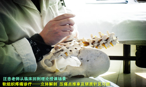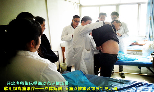汪忠老师临床授课动态评估,压痛点检查,定位定点,银质针疗法授课场景